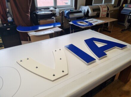 Výroba a montáž plastického loga pro firmu Eurovia.